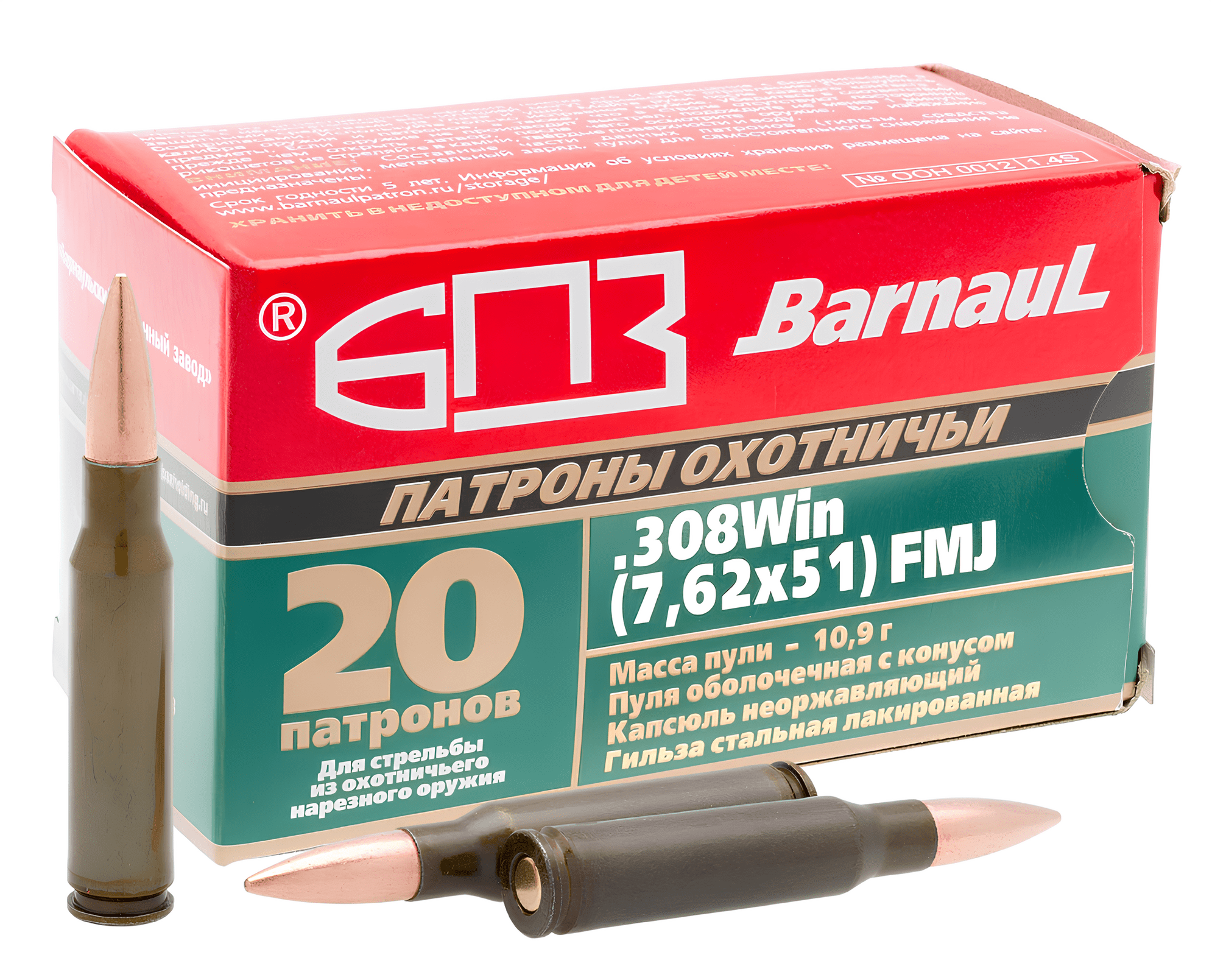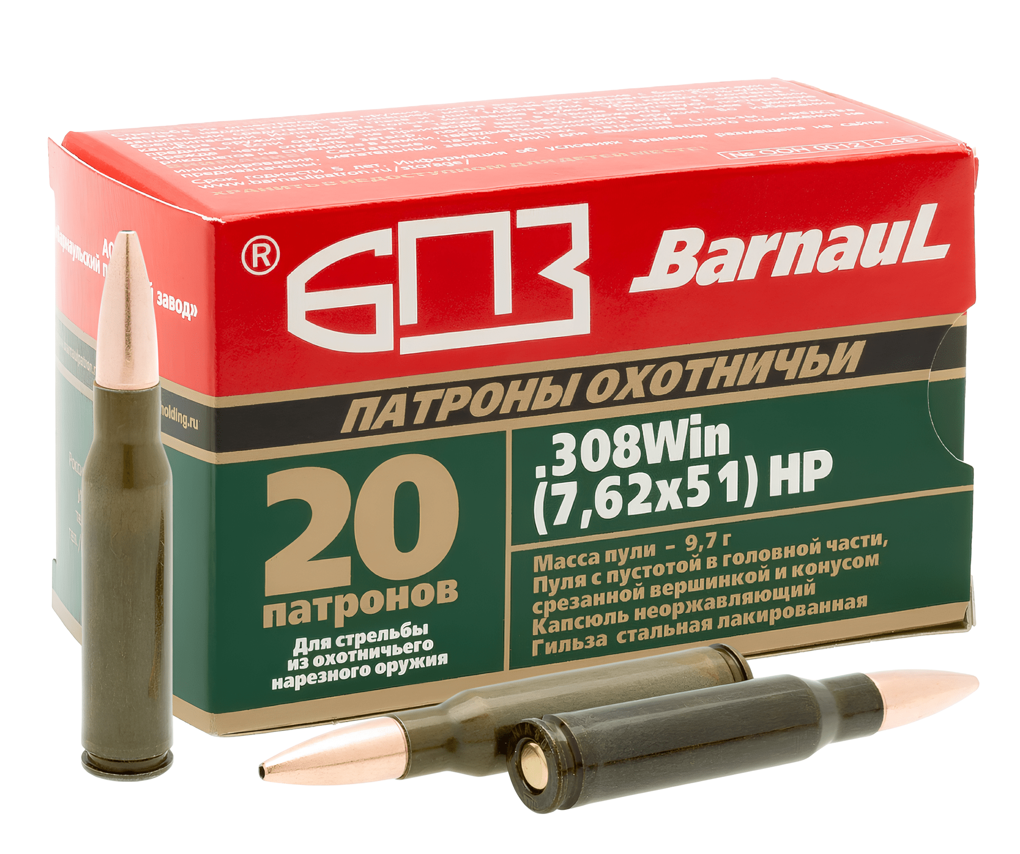 7,62×54R — первый винтовочный русский патрон, разработанный в 1891 году, стал основой для знаменитой винтовки Мосина. Претерпев несколько модификаций, этот боеприпас приобрел оптимальные форму и размер, что сделало его незаменимым в промысловой охоте. Он прекрасно подходит для крупной и средней дичи, такой как лось, олень и кабан. Вес пули составляет 9,14–13,2 грамма.