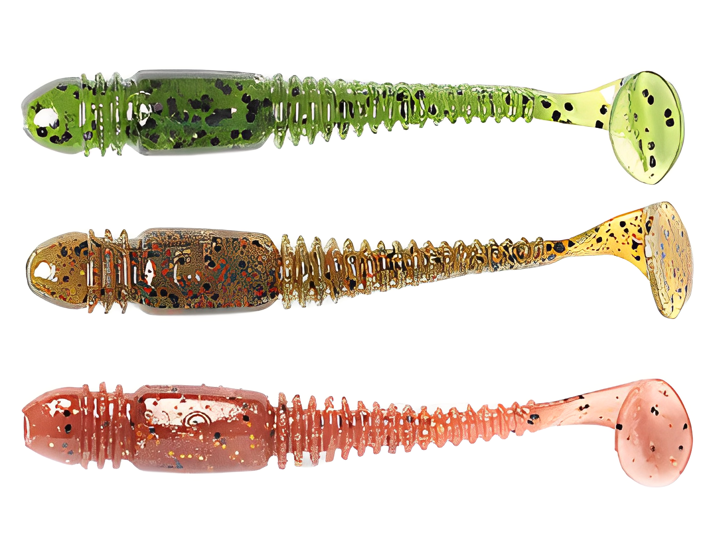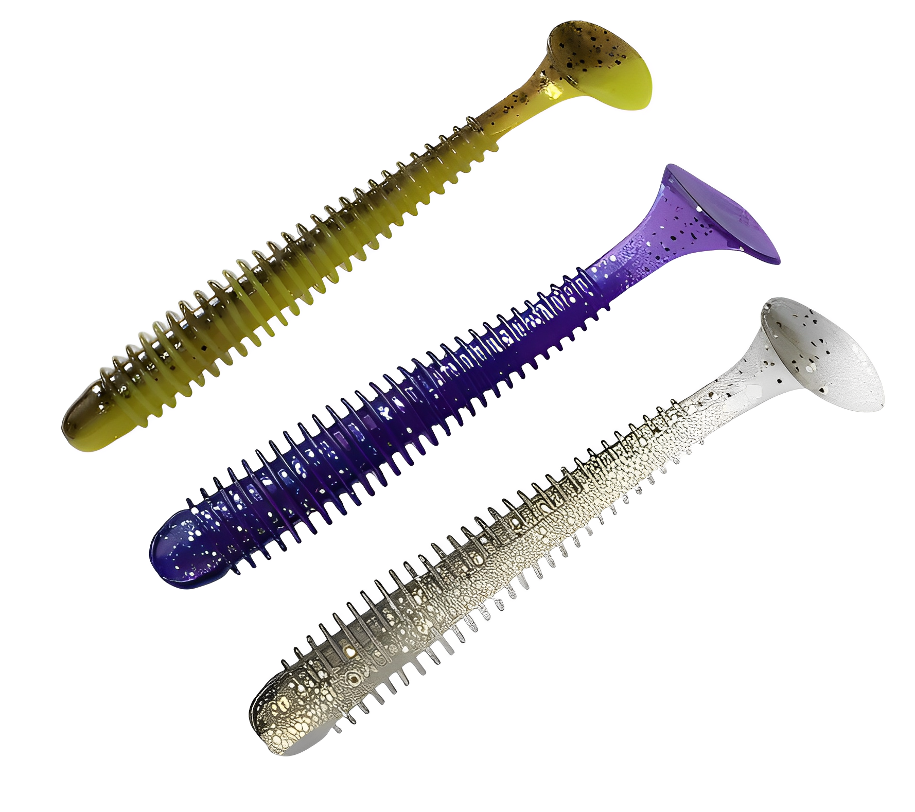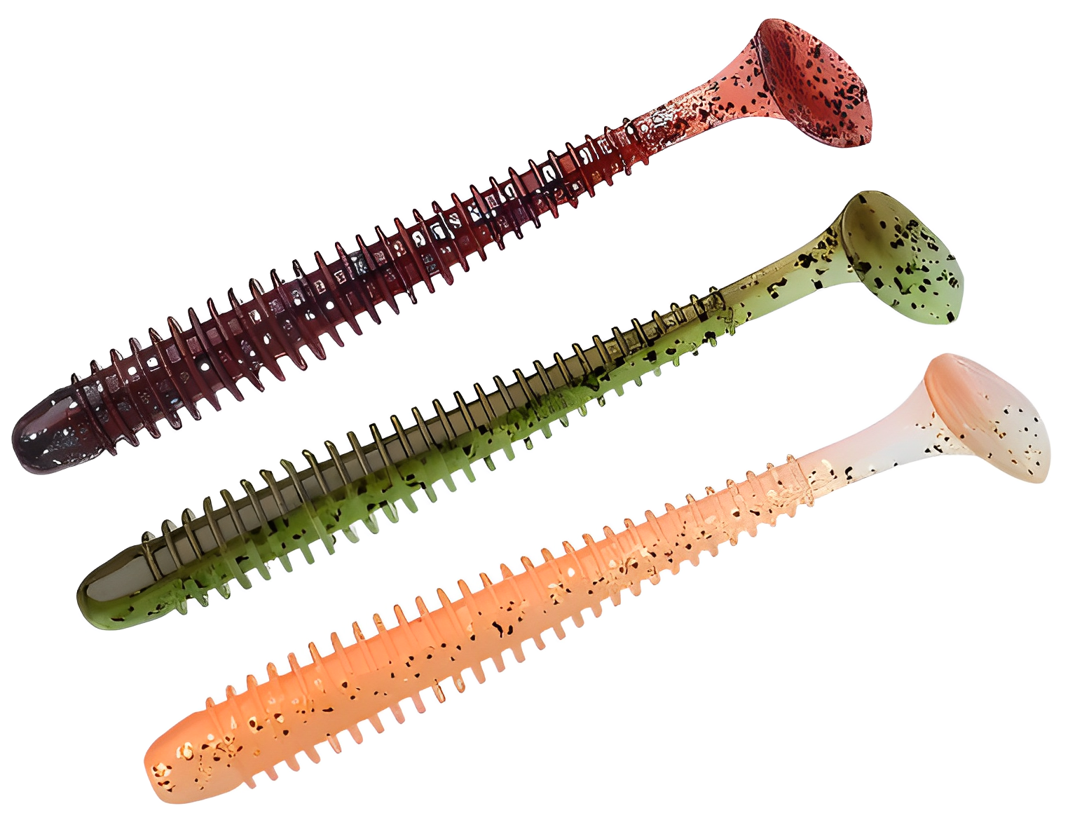 Твистеры — это активные приманки, отличающиеся цилиндрической формой тела, которое может быть тонким, объемным, коротким или длинным. Поверхность твистера может быть гладкой, с легким рельефом или ярко выраженной ребристостью, что создает дополнительные акустические эффекты во время проводки, привлекая хищников. Ключевой особенностью твистера является его хвост, который, словно вопросительный знак, изгибается и создает частые колебания. Размеры, толщина и степень изогнутости хвоста у разных моделей могут различаться, что влияет на характер игры приманки. Хищные рыбы издалека замечают эти вибрации и стремительно бросаются в атаку. Твистеры часто используются в сочетании с разнесенной оснасткой, дроп-шотом и отводным поводком, что позволяет разнообразить методы ловли.